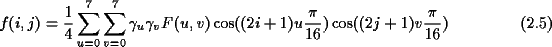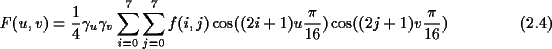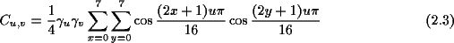 Durch den Basiswechsel ergeben sich 64 eindeutige Koeffizienten, die den Anteil des jeweiligen Basisblocks an dem Bilddatenblock darstellen. Die Koeffizienten werden berechnet durch: