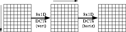 Wie man aus den Formeln erkennt, ist die Berechnung der Koeffizienten recht umfangreich. So benötigt man für einen 8 x 8-Block 63 Additionen und 64 Multiplikationen. Man kann das Problem durch Faktorisierung vereinfachen
