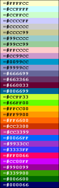 Farbangaben sind wie in HTML RGB-Hexadezimalwerte. Numerische Angaben können absolute Werte sein - in (inches), cm (centimeters), mm (millimeters), pc (picas), pt (points) - oder auch relative Werte - px (pixel), em (bezogen auf Schrifthöhe), ex (bezogen auf Höhe des Buchstabens X), % (prozentual gegenüber Elementnorm) -.