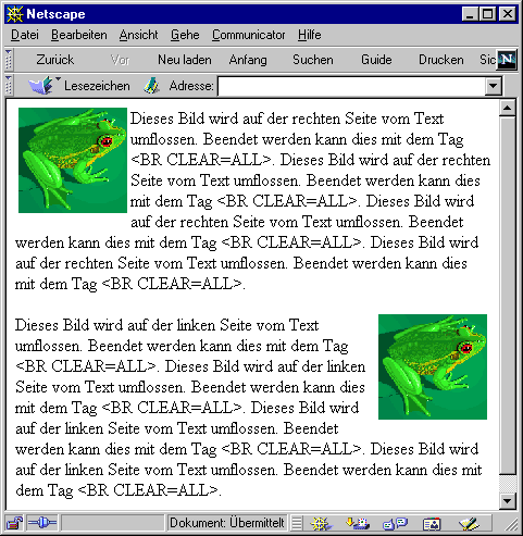Leerzeichen und -zeilen in HTML-Dokumenten werden vom Browser in der Regel ignoriert, da Informationen über Zeilenwechsel und Beginn eines neuen Abschnittes in den einzelnen Strukturanweisungen enthalten sind. Sollte es einmal nötig sein, einen Zeilenumbruch zu erzwingen, so geschieht dies mit Hilfe der <BR>-Anweisung.