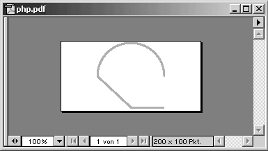 Mit pdf_endpath() beendet man einen Pfad innerhalb eines PDF-Dokuments (PDF-Dokument), ohne ihn explizit zu schließen. Nachfolgende Funktionen werden dann nicht mehr den Endpunkt des letzten Pfades finden, um von diesem Punkt aus weiterzeichnen zu können. Im unteren Beispiel wurde ein Bogen mit 180° entgegen dem Uhrzeigersinn gezeichnet. Am Ende des Pfades wurde danach eine diagonale Linie bis zum unteren Rand der Seite gezogen. Von diesem Endpunkt verläuft eine horizontale Linie nach rechts. Danach wurde der Pfad beendet. Es ist nun nicht mehr möglich, den Anfangs-/Endpunkt des Pfads automatisch zu nutzen.