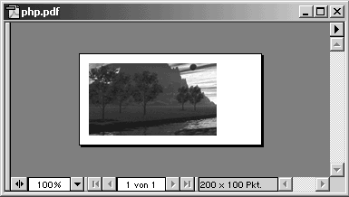 Mit pdf_open_gif() liest man ein GIF-Bild aus einer Datei (Dateiname) und stellt es dem PDF-Dokument (PDF-Dokument) zur weiteren Bearbeitung zur Verfügung. Im unteren Beispiel wurde ein GIF-Bild in das PDF-Dokument geladen und mit pdf_place_image() an einer bestimmten Stelle positioniert. Diese Funktion sollten Sie in neuen Programmen nicht mehr verwenden. Benutzen Sie an ihrer Stelle die Funktion pdf_open_image_file().