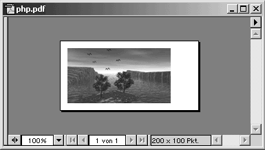 Mit pdf_open_png() liest man ein PNG-Bild aus einer Datei (Dateiname) und stellt es dem PDF-Dokument (PDF-Dokument) zur weiteren Bearbeitung zur Verfügung.Im unteren Beispiel wurde ein PNG-Bild in das PDF-Dokument geladen und mit pdf_place_image() an einer bestimmten Stelle positioniert. Diese Funktion sollten Sie in neuen Programmen nicht mehr verwenden. Benutzen Sie an ihrer Stelle die Funktion pdf_open_image_file().