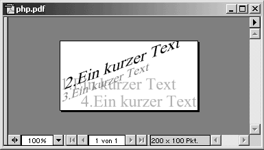 pdf_show_xy ( $dokument, '2.Ein kurzer Text', 0, 30 );