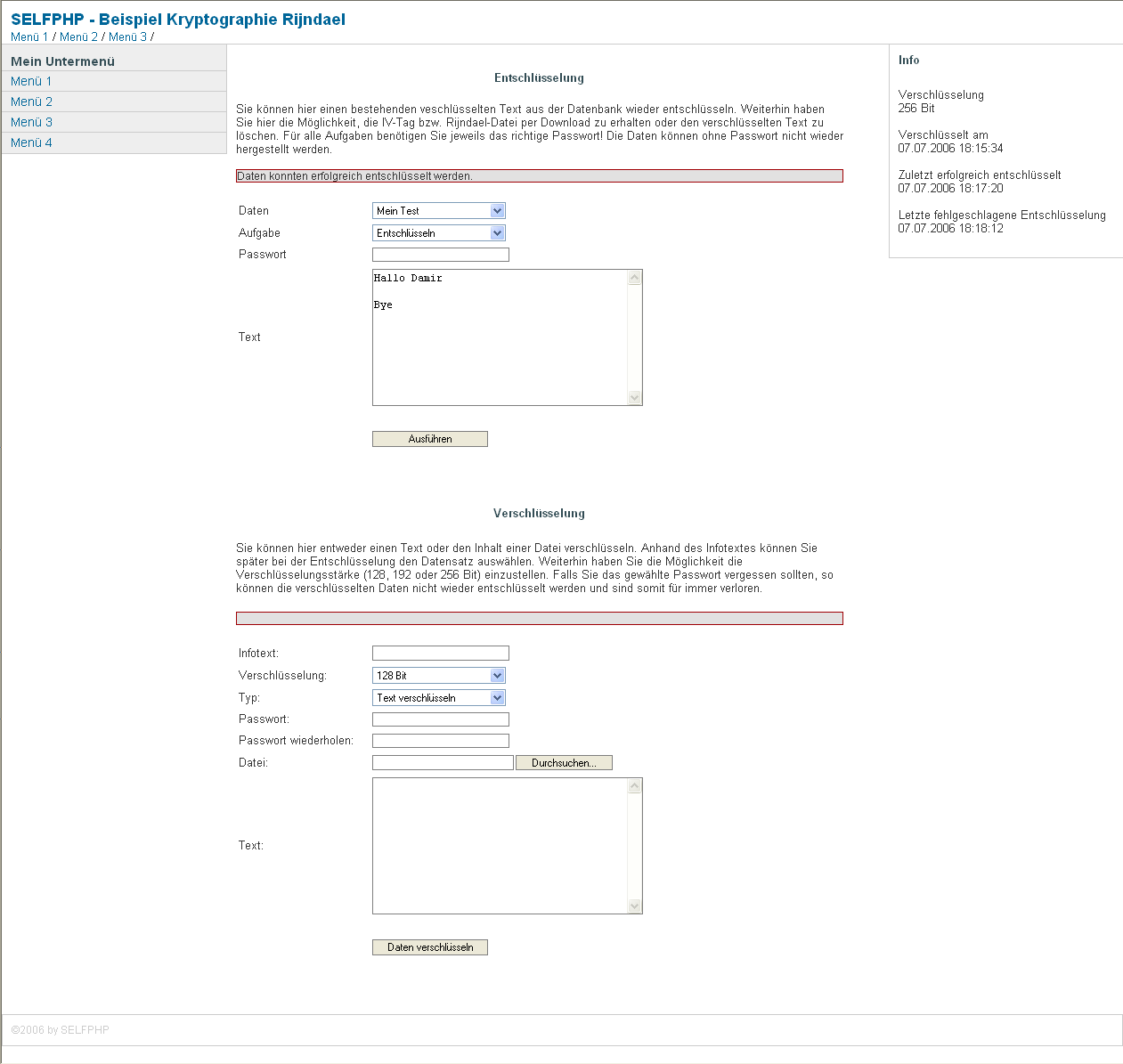 Das folgende Beispiel ist eine komplette Lösung zur Verschlüsselung. Die
