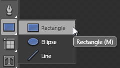 Note: The (M) following the Rectangle tool is the quick key that you can also use to select this shape tool. You would simply press M to switch to the Rectangle tool, L to select the Ellipse tool and, \ (back slash) to select the Line tool.