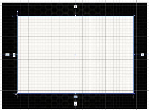 Note that by holding down the Alt key, you are creating this shape from the center, rather than from the upper left. Click and drag until the values in the handles indicate that the rectangle is approximately 400 pixels high and 638 pixels wide. Again, this does not have to be exact.