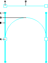 A. Anchor point. B. Direction Line. C. Direction Handle. D. Line Segment.