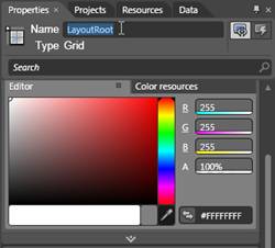 Click the LayoutRoot element in Objects and Timeline and make sure the Properties tab is selected.