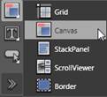 Now you’ll add another canvas, then we can move on to adding and removing elements from a canvas control. Click and hold the Grid (in the Tools panel) and select Canvas.