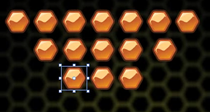 To center the honeycombs within the screen you can select them all in the Objects and timeline panel by pressing the Shift key and clicking on the first and last honeycomb. Then use your arrow keys to nudge the group to the center of the screen.