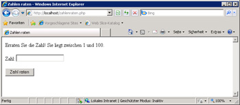 Listing 1.8 PHP-Beispielapplikation: Erraten einer Zahl zwischen 1 und 100 – Startseite