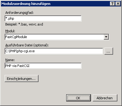 die Endung *.php haben, als Modul wird das FastCgiModule verwendet und als Ausführbare Datei setzen