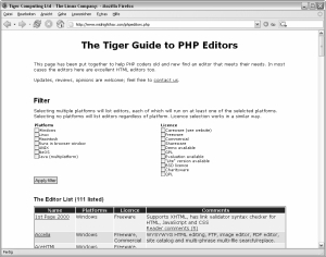Bild 1.4: PHP-Editors-Liste, welche zahlreiche Editoren zur Auswahl stellt