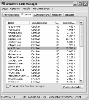 Bild 2.14: Taskleiste, in der mysql als Prozess aufgeführt wird